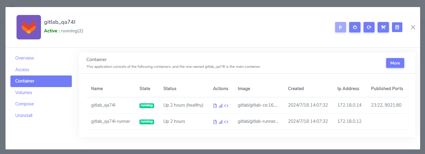 Click the Containers tab, you can see all containers status of this application